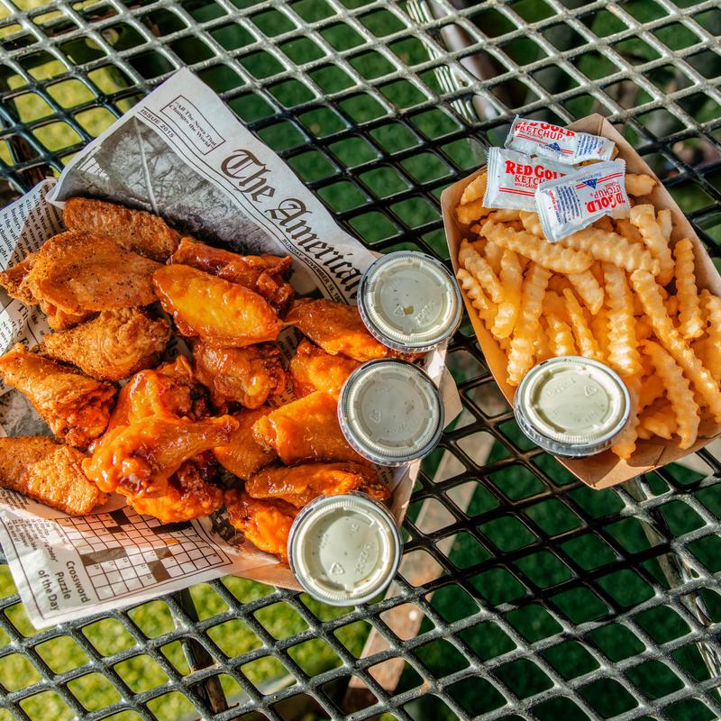 First time having the wings today, and they were great ! Bone-in, great size, and nice crisp to the skin. The fries were crispy as well. My wife ordered their chicken and waffle and enjoyed is as well.